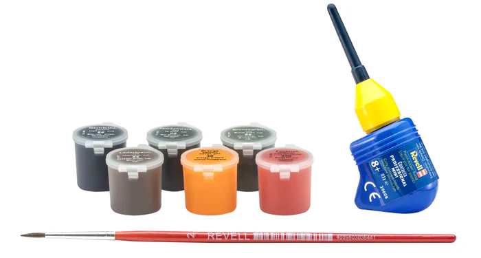 - Everything included: Adhesive, brush and base colors from Revell (Aqua Color) for a simple start.