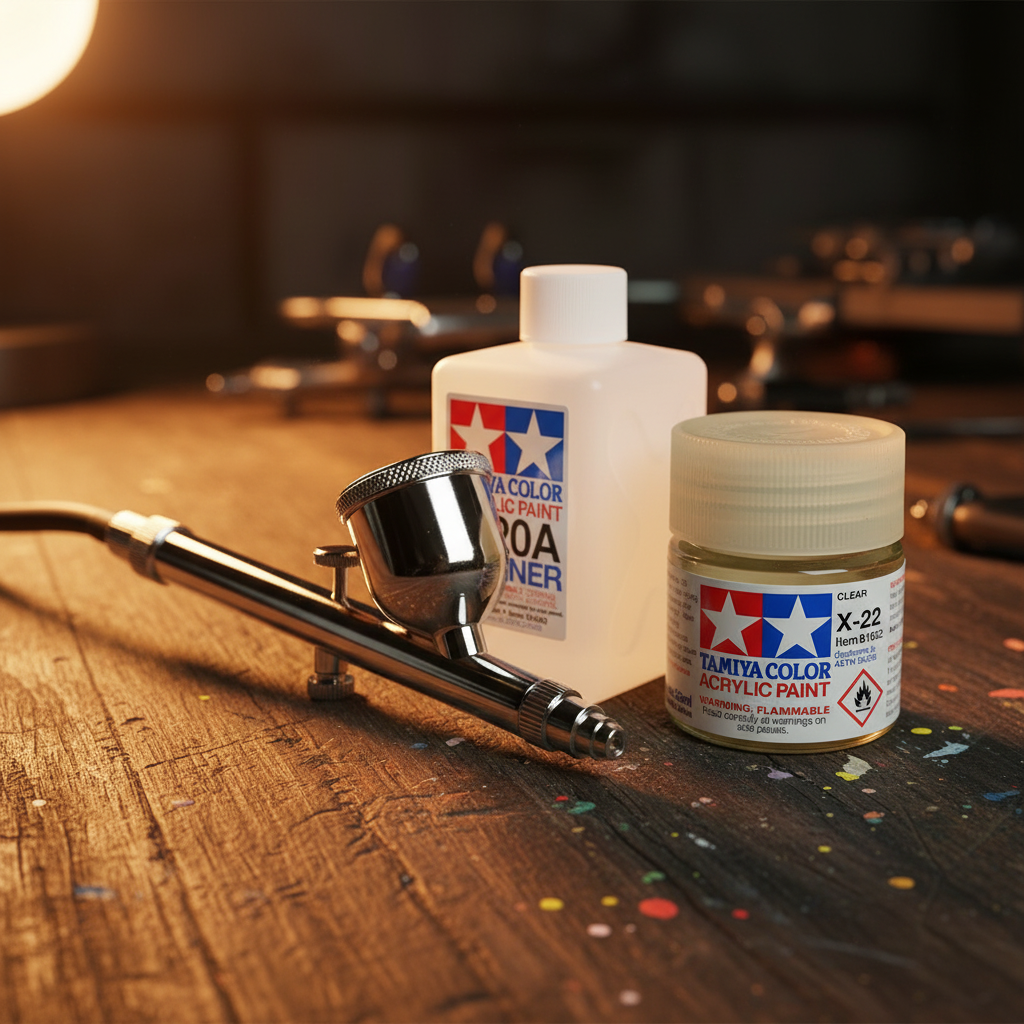 • The paint can be thinned for airbrushing using Tamiya X-20A Acrylic thinner.