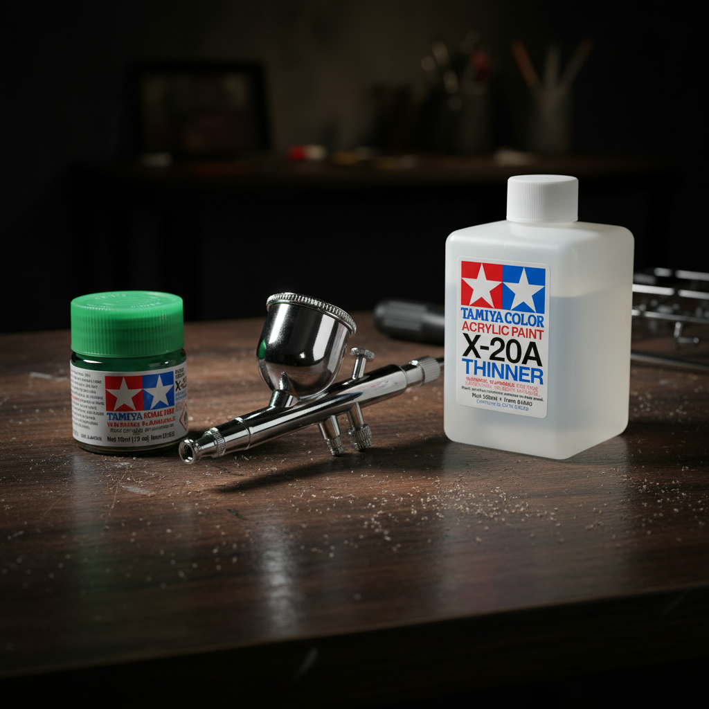 • The paint can be thinned for airbrushing using Tamiya X-20A Acrylic thinner.