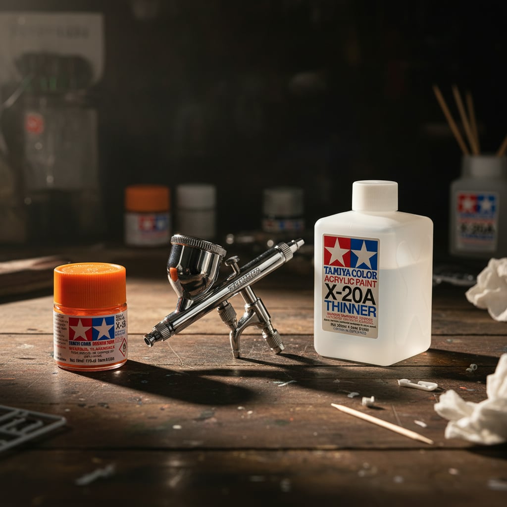 • The paint can be thinned for airbrushing using Tamiya X-20A Acrylic thinner.