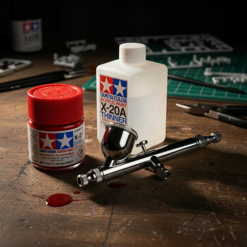 • The paint can be thinned for airbrushing using Tamiya X-20A Acrylic thinner.