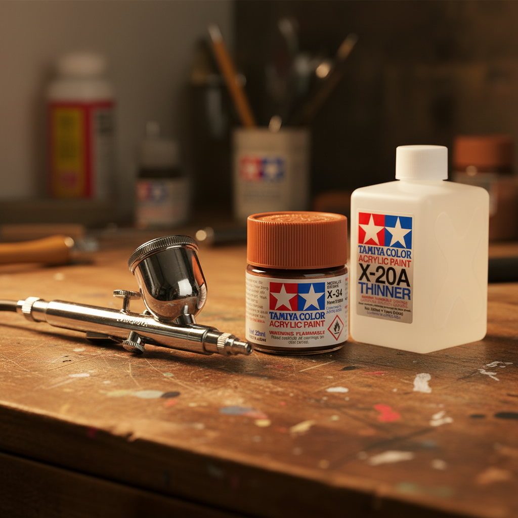 • The paint can be thinned for airbrushing using Tamiya X-20A Acrylic thinner.