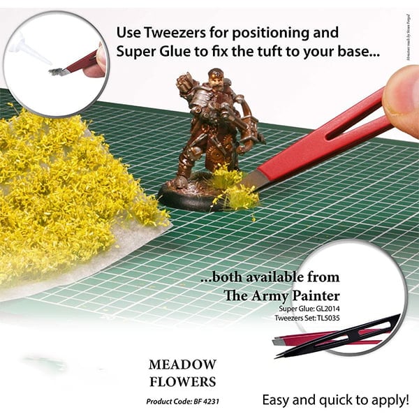 - APPLY WITH EASE – tufts are easy to use. Simply remove your chosen tuft from the pad, add a little Super Glue or Basing Glue to the underside, and place it on your chosen spot on your miniature base. Tufts are added as a final touch, after you have painted and varnished your model