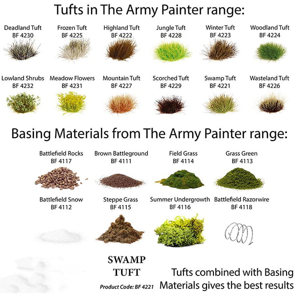 It came from the swamp! A very realistic look andvery good to combine this tuft with others for greateffects. The Army Painter would like to remind our customer base that selling on Amazon or other 3rd party online platforms is against the company policy of The Army Painter.