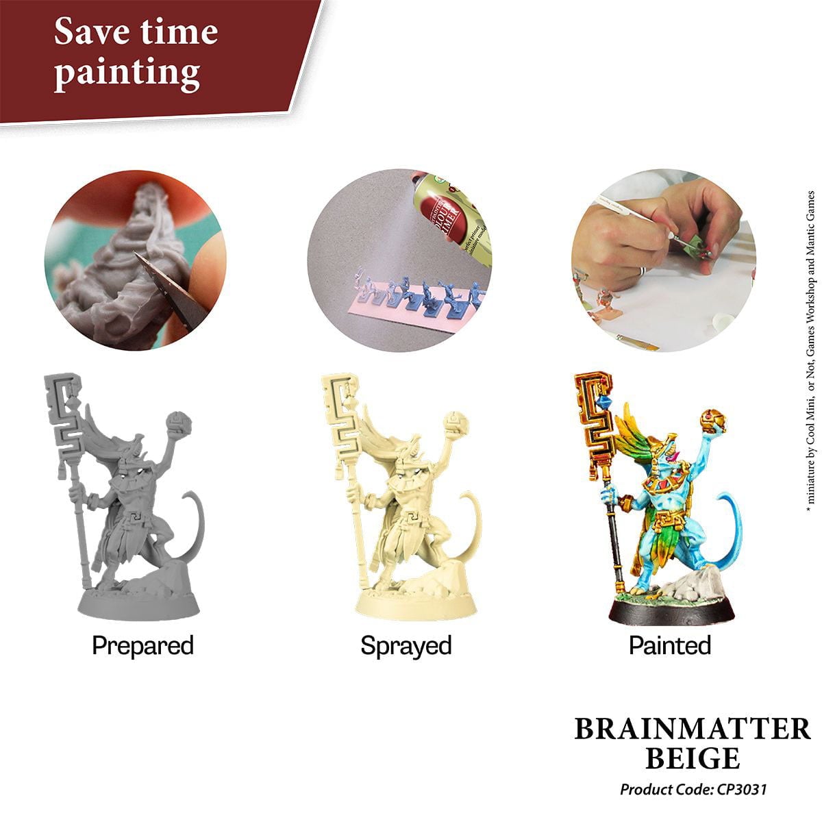 - Saves time painting – Prime your model with your chosen base colour