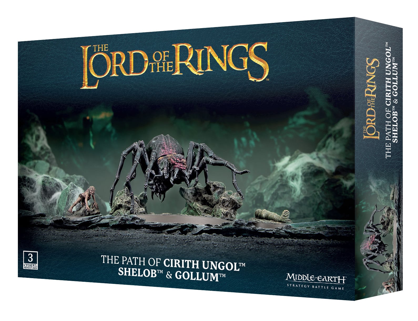 Relive the chilling attack of the monstrous Shelob from The Lord of the Rings: The Return of the King™ with The Path of Cirith Ungol: Shelob & Gollum, a new set of three plastic miniatures for the Middle-earth™ Strategy Battle Game. Shelob is a terrifying creature able to paralyse enemies she doesn’t kill and wrap up unfortunate prey with sticky webs, while Gollum (or sometimes Sméagol) is his usual treacherous self who excels at sneaking around unseen.