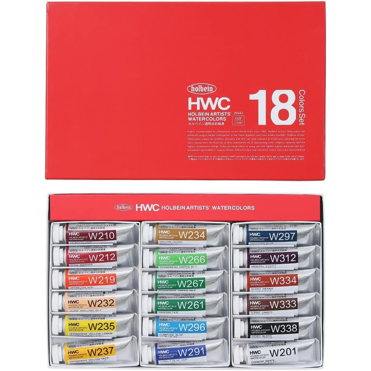 W442 Holbein Artist Watercolour Paint Set of 18 – 15ml W442