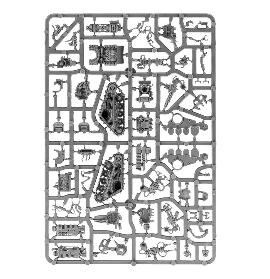 Almost entirely cybernetic, the Kataphron Destroyers feature three interchangeable heads, three servitor assemblies, three interchangeable exhausts and a HUGE array of weapons: arc rifles, torsion cannons, arc claws, hydraulic claws, plasma culverin assemblies, heavy grav cannon assemblies, phosphor blaster assemblies and three cognis flamer assemblies. Twenty-four weapon options in total!
