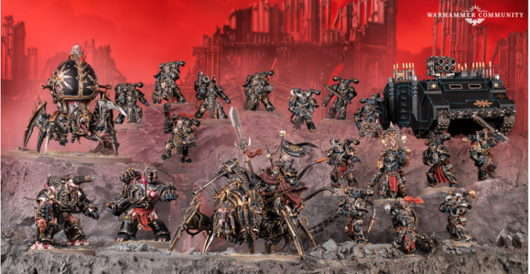 A dark mirror of the Emperor’s Space Marines, Heretic Astartes are the remnants of the forces that allied with the Warmaster in the Horus Heresy, mixed with more modern renegades. Millennia living in the warp has twisted them and granted them dark power that they use to strike back at their foes. A Lord Discordant leads a Hellforged Warband from atop a powerful Helstalker, commanding an arachnoid Venomcrawler, two Obliterators, who transform to manifest a variety of heavy ordnance, and five Havocs, who train powerful weapons on their foes.
