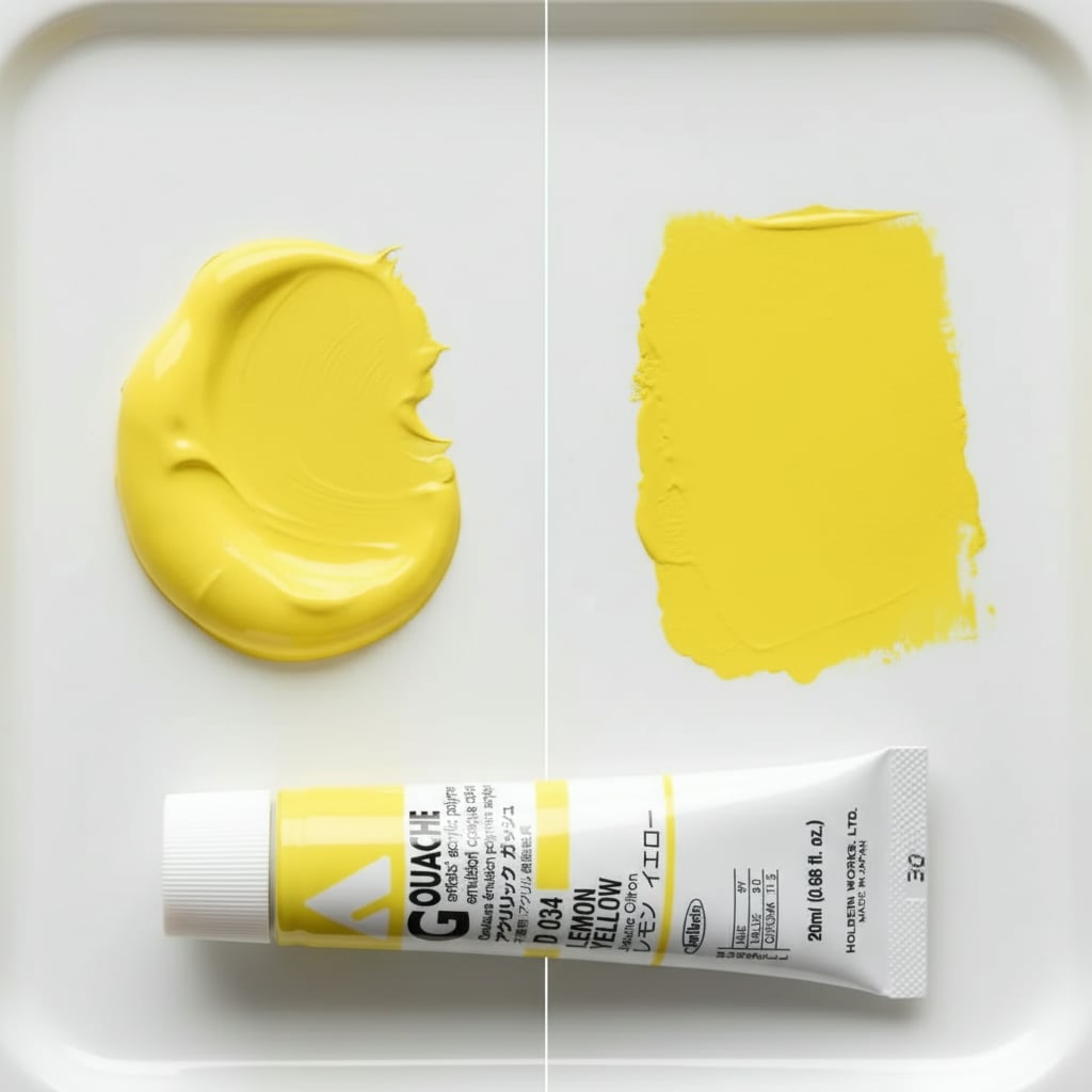 Drying to a velvet matte finish; Holbein Acryla Gouache does not shift in color tone from liquid to dry color. What you see wet is what you get once dry.
