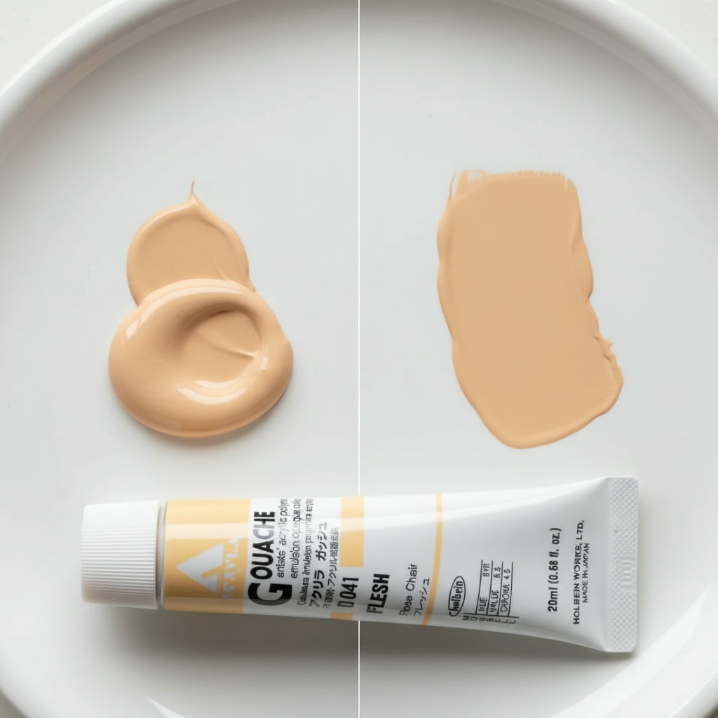 Drying to a velvet matte finish; Holbein Acryla Gouache does not shift in color tone from liquid to dry color. What you see wet is what you get once dry.