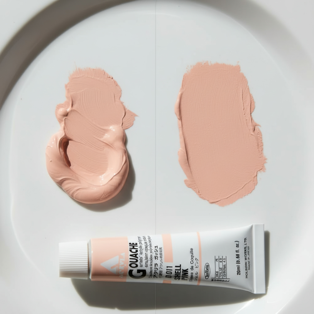 Drying to a velvet matte finish; Holbein Acryla Gouache does not shift in color tone from liquid to dry color. What you see wet is what you get once dry.