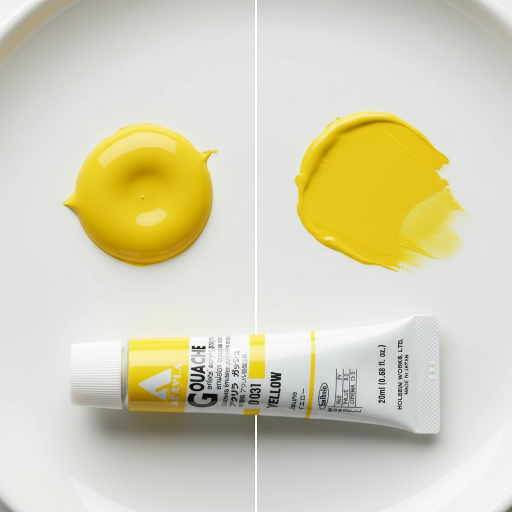 Drying to a velvet matte finish; Holbein Acryla Gouache does not shift in color tone from liquid to dry color. What you see wet is what you get once dry.