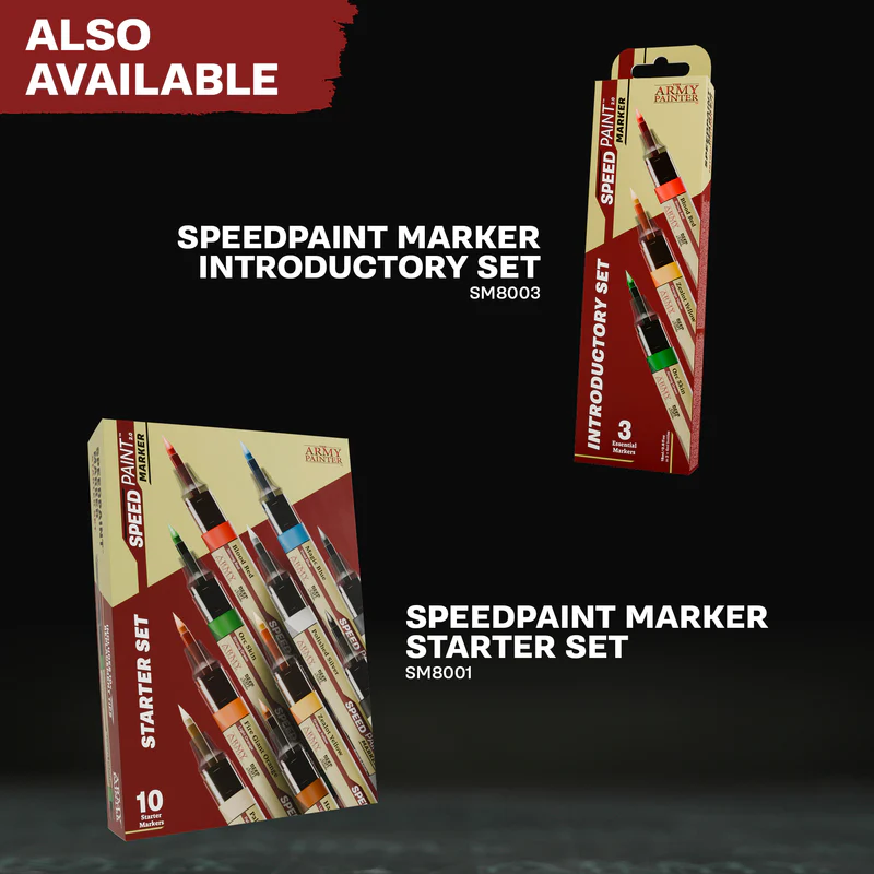 With Speedpaint Markers, you hold an entire hobby in your hands. With the release of Speedpaint Marker singles, you can experiment with a new way to paint and push the boundaries of your hobby. Try Speedpaint Markers with 20 ultra-rich colours that make painting easier than ever. Without a brush or palette, you can switch between colours in a heartbeat and take your hobby wherever you go. Our innovative Felt-Tech tip technology combines precision and even pigment distribution—cover large surfaces or paint the smallest details. Reimagine your hobby.