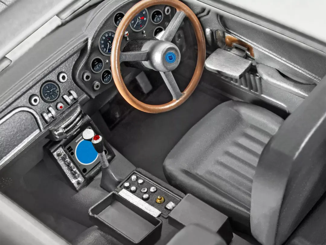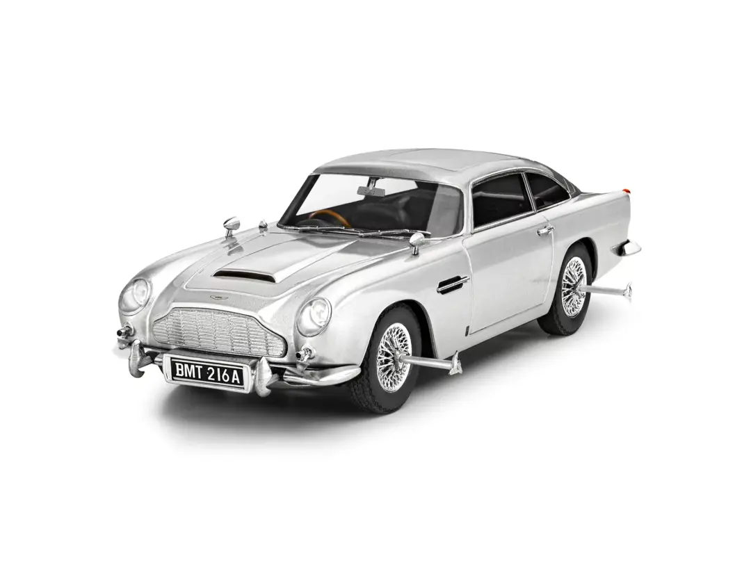 - Authentic water-slide decals and stickers to build 007’s car as seen in the film
