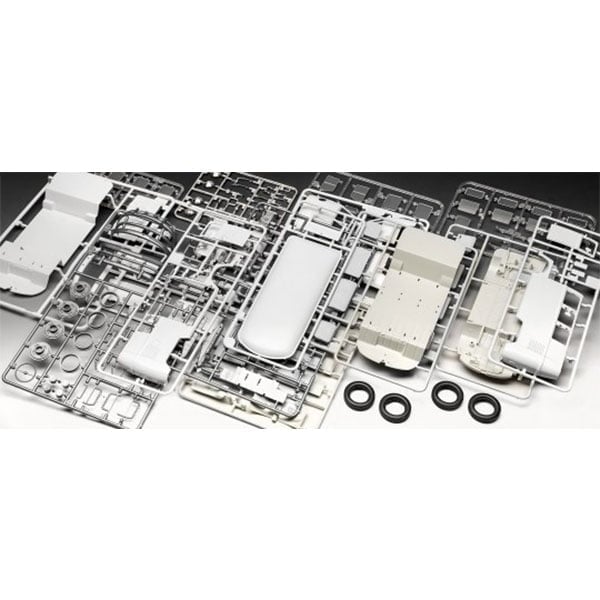 Sophisticated, multi-part model kit of the VW T1 bus. To this day, the T1 is seen as a symbol of the economic miracle.