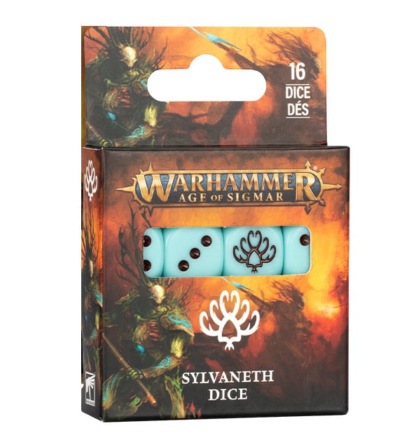 Complete your Sylvaneth collection with a pack of 16 pale-blue dice sporting black pips and the faction logo on the six face