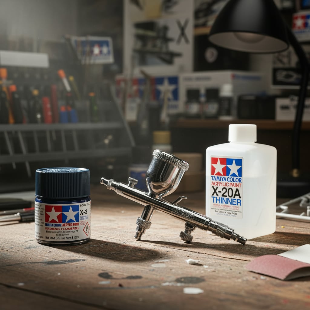 • The paint can be thinned for airbrushing using Tamiya X-20A Acrylic thinner.