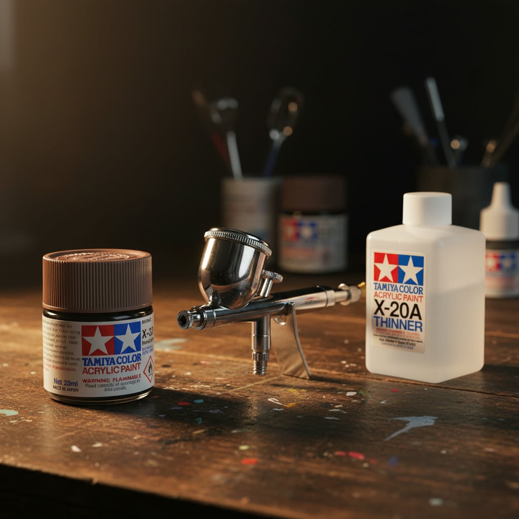 • The paint can be thinned for airbrushing using Tamiya X-20A Acrylic thinner.