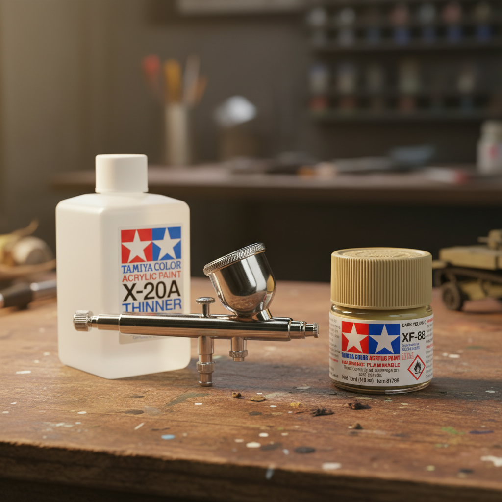 - The paint can be thinned for airbrushing using Tamiya X-20A Acrylic thinner.