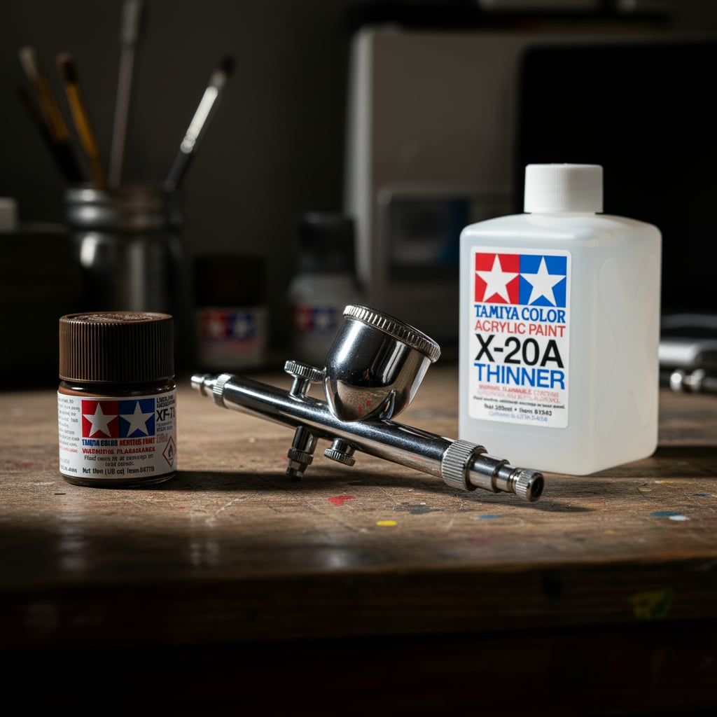 - The paint can be thinned for airbrushing using Tamiya X-20A Acrylic thinner.