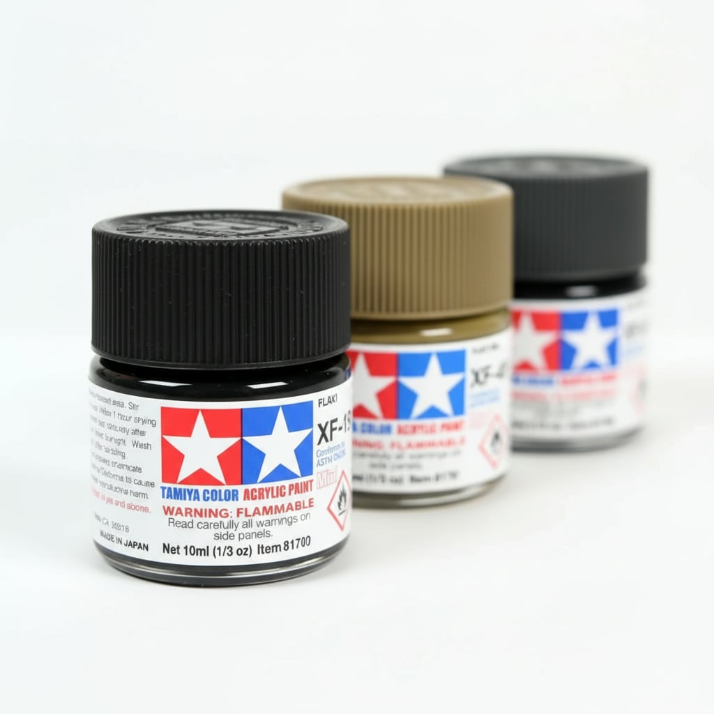 Tamiya acrylic paints are made from water-soluble acrylic resins and are excellent for either brush painting or airbrushing. These paints can be used on styrene resins, Styrofoam, wood, plus all the common model plastics. The paint covers well, flows smoothly, and can be blended easily. Prior to curing, paint can be washed away with plain water.