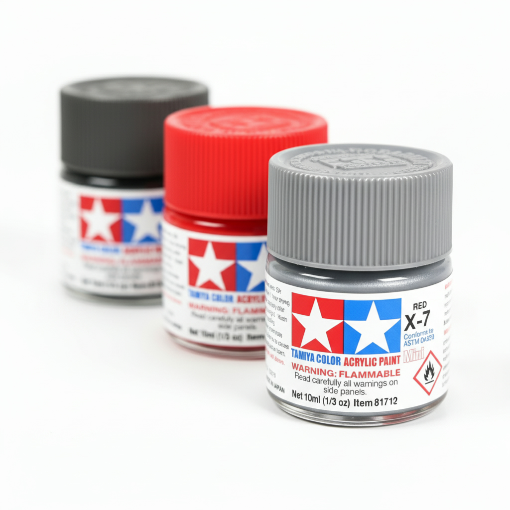 Tamiya acrylic paints are made from water-soluble acrylic resins and are excellent for either brush painting or air-brushing. These paints can be used on styrene resins, Styrofoam, wood, plus all of the common model plastics. The paint covers well, flows smoothly and can be blended easily.