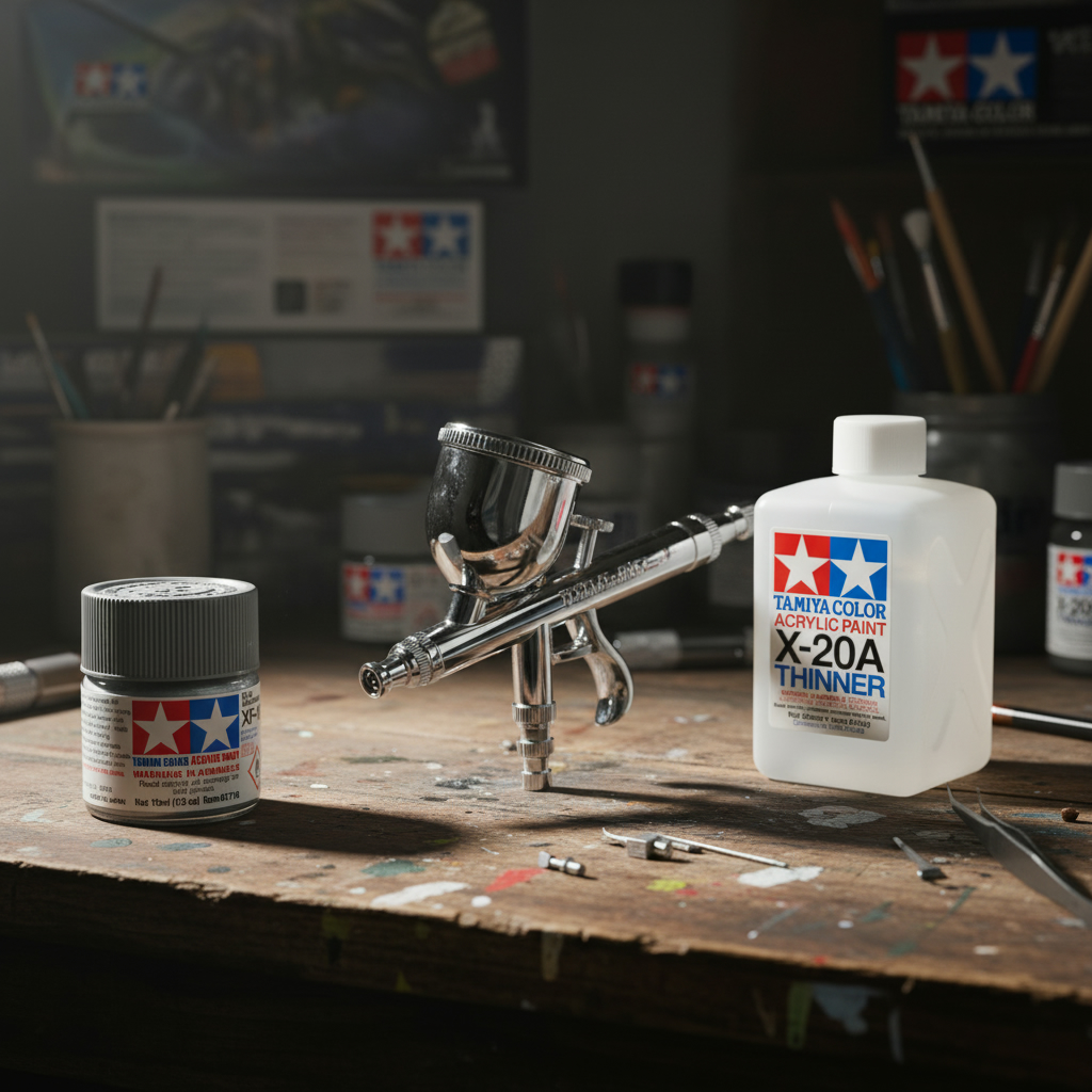 When airbrushing make sure to use any of the following Tamiya thinners: 81020, 81030, 81040, 81520, 87077