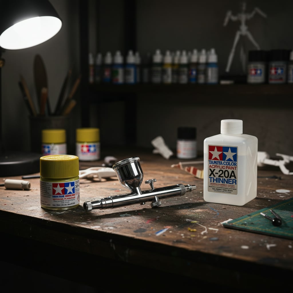 • The paint can be thinned for airbrushing using Tamiya X-20A Acrylic thinner.