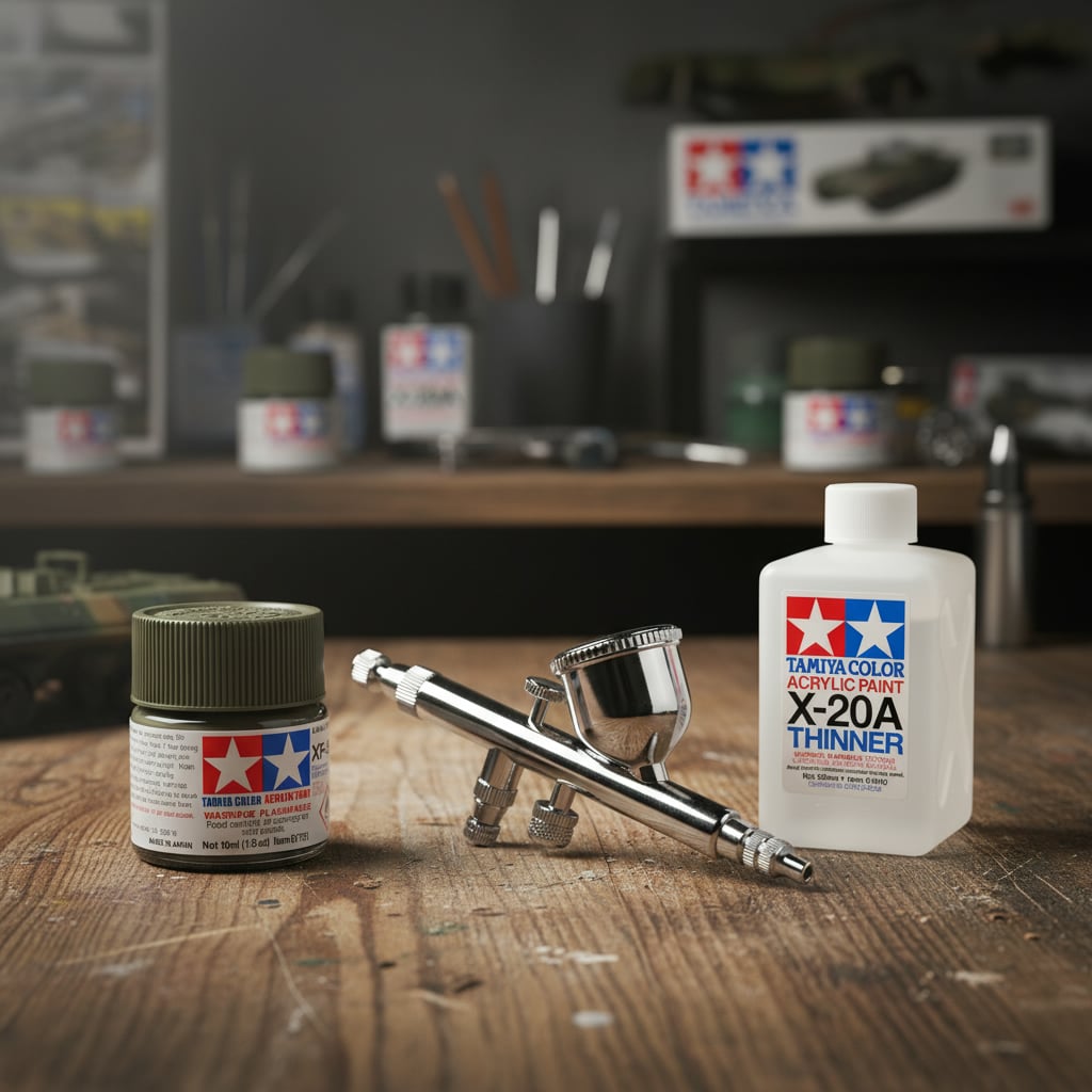 When airbrushing make sure to use any of the following Tamiya thinners: 81020, 81030, 81040, 81520, 87077