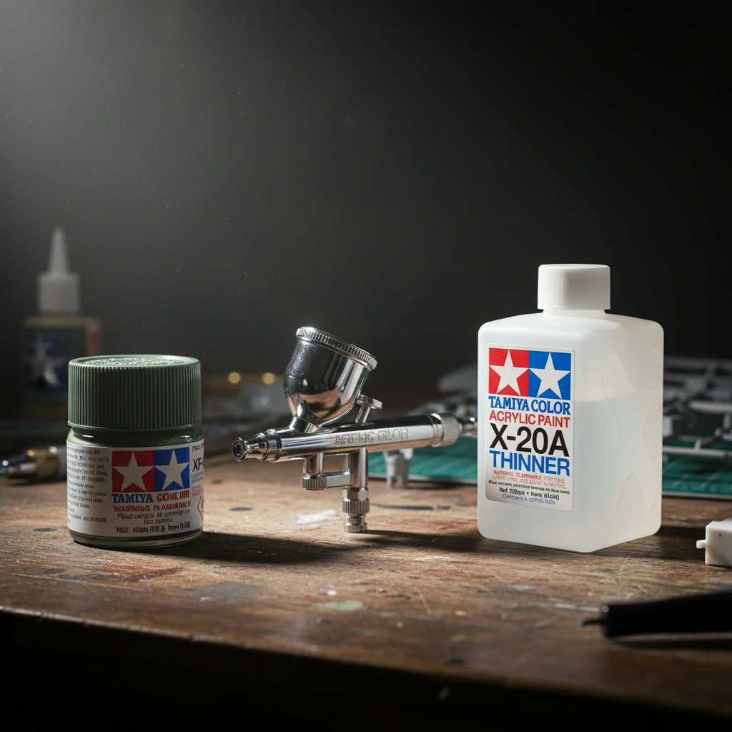 When airbrushing make sure to use any of the following Tamiya thinners: 81020, 81030, 81040, 81520, 87077