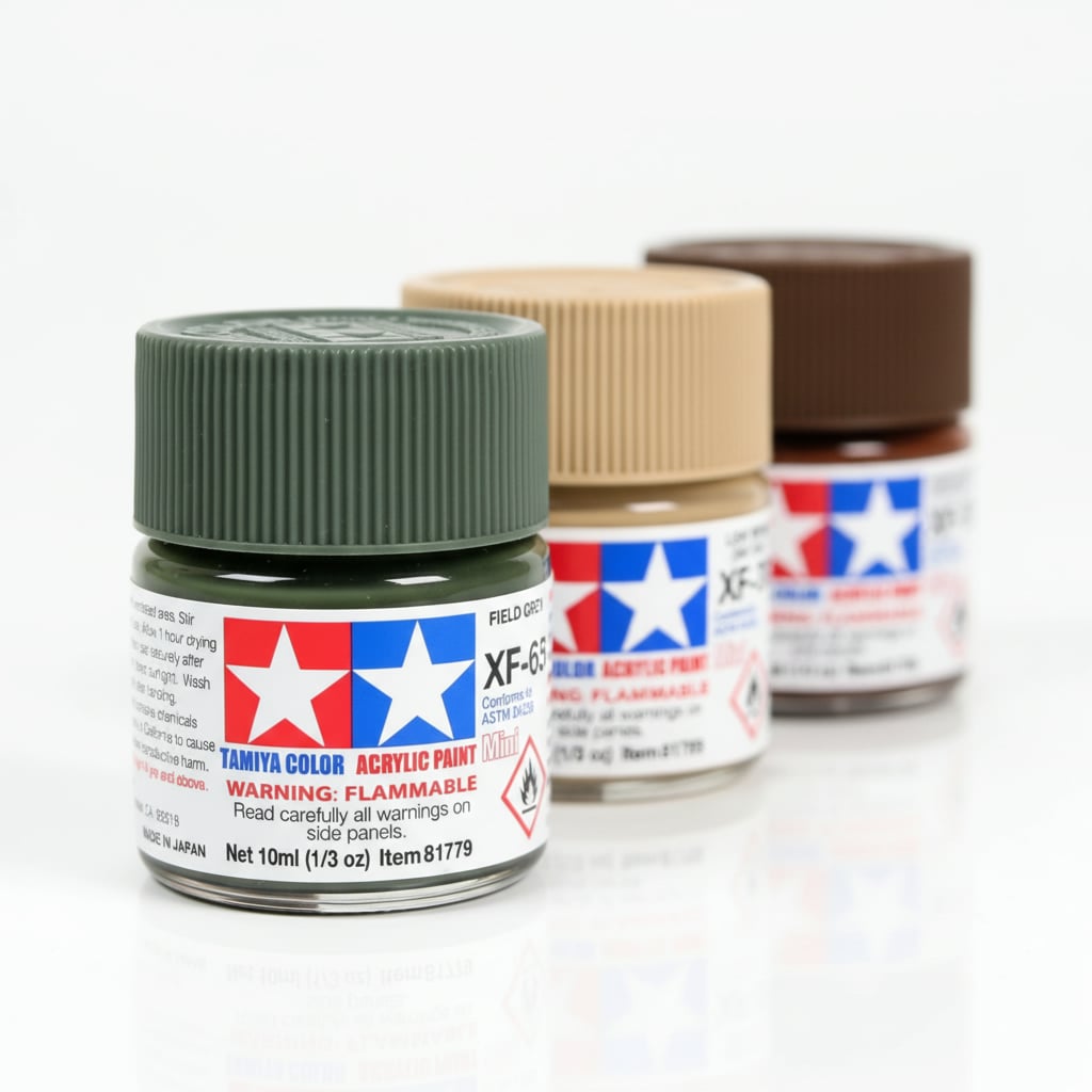 Tamiya acrylic paints are made from water-soluble acrylic resins and are excellent for either brush painting or air-brushing. These paints can be used on styrene resins, Styrofoam, wood, plus all of the common model plastics. The paint covers well, flows smoothly and can be blended easily.