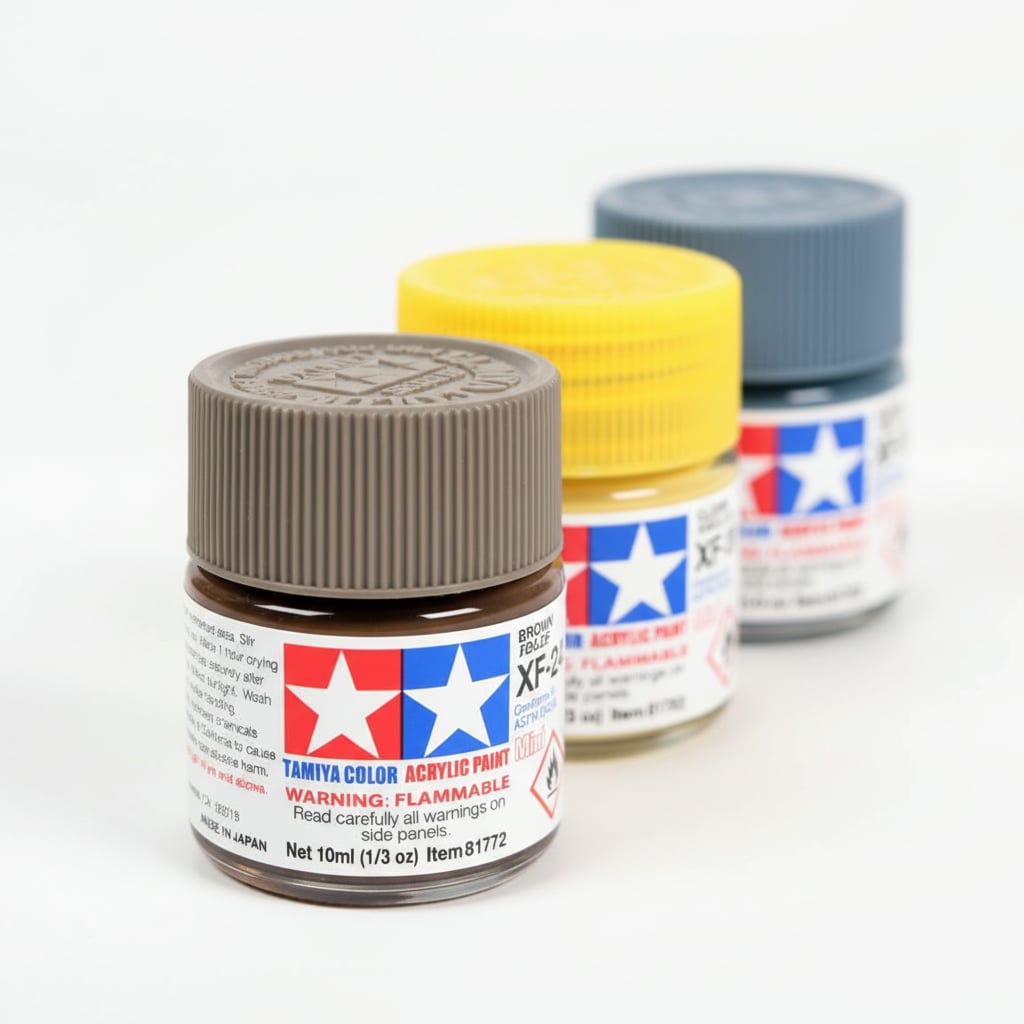 Tamiya acrylic paints are made from water-soluble acrylic resins and are excellent for either brush painting or air-brushing. These paints can be used on styrene resins, Styrofoam, wood, plus all of the common model plastics. The paint covers well, flows smoothly and can be blended easily.