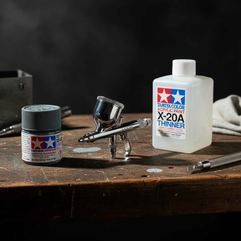 When airbrushing make sure to use any of the following Tamiya thinners: 81020, 81030, 81040, 81520, 87077