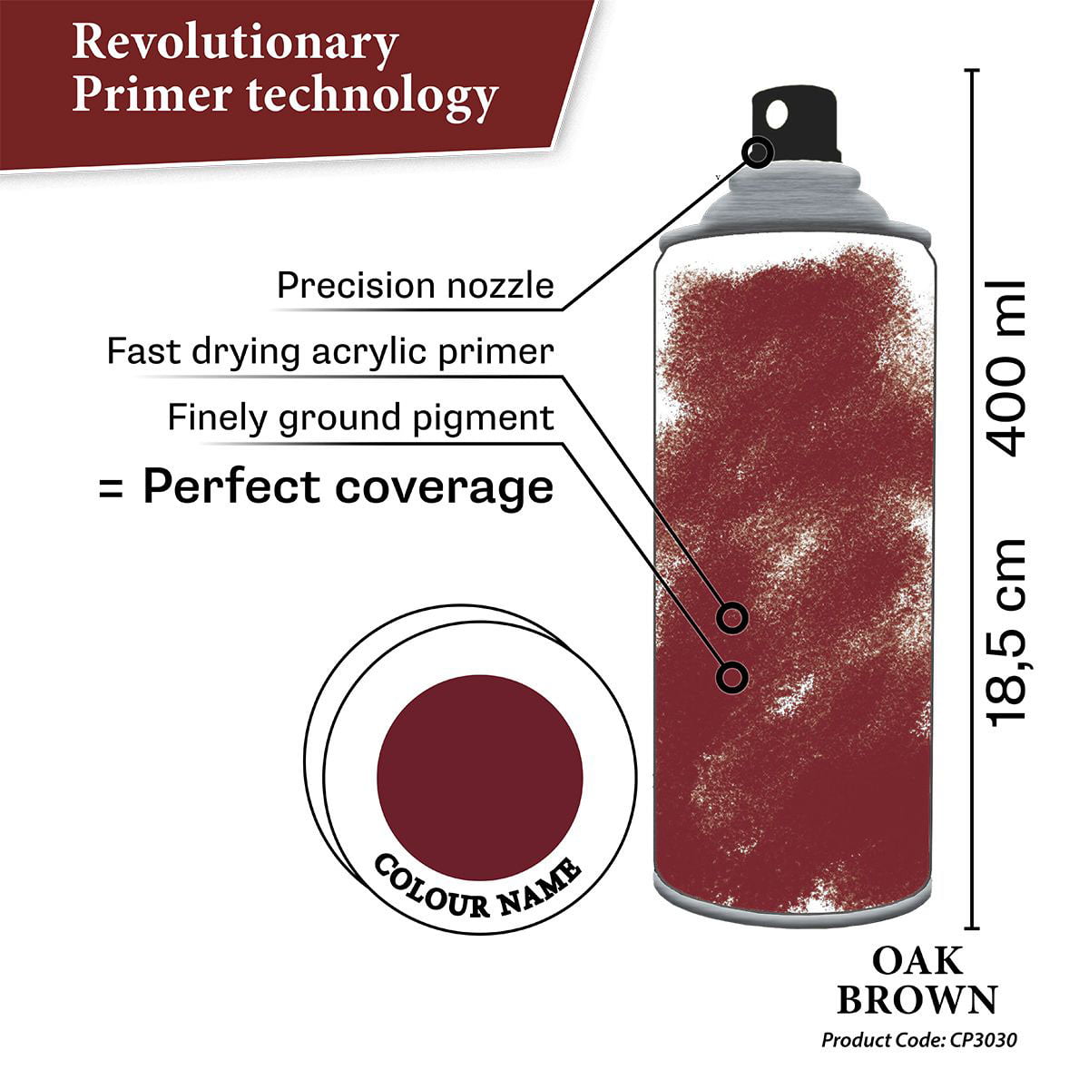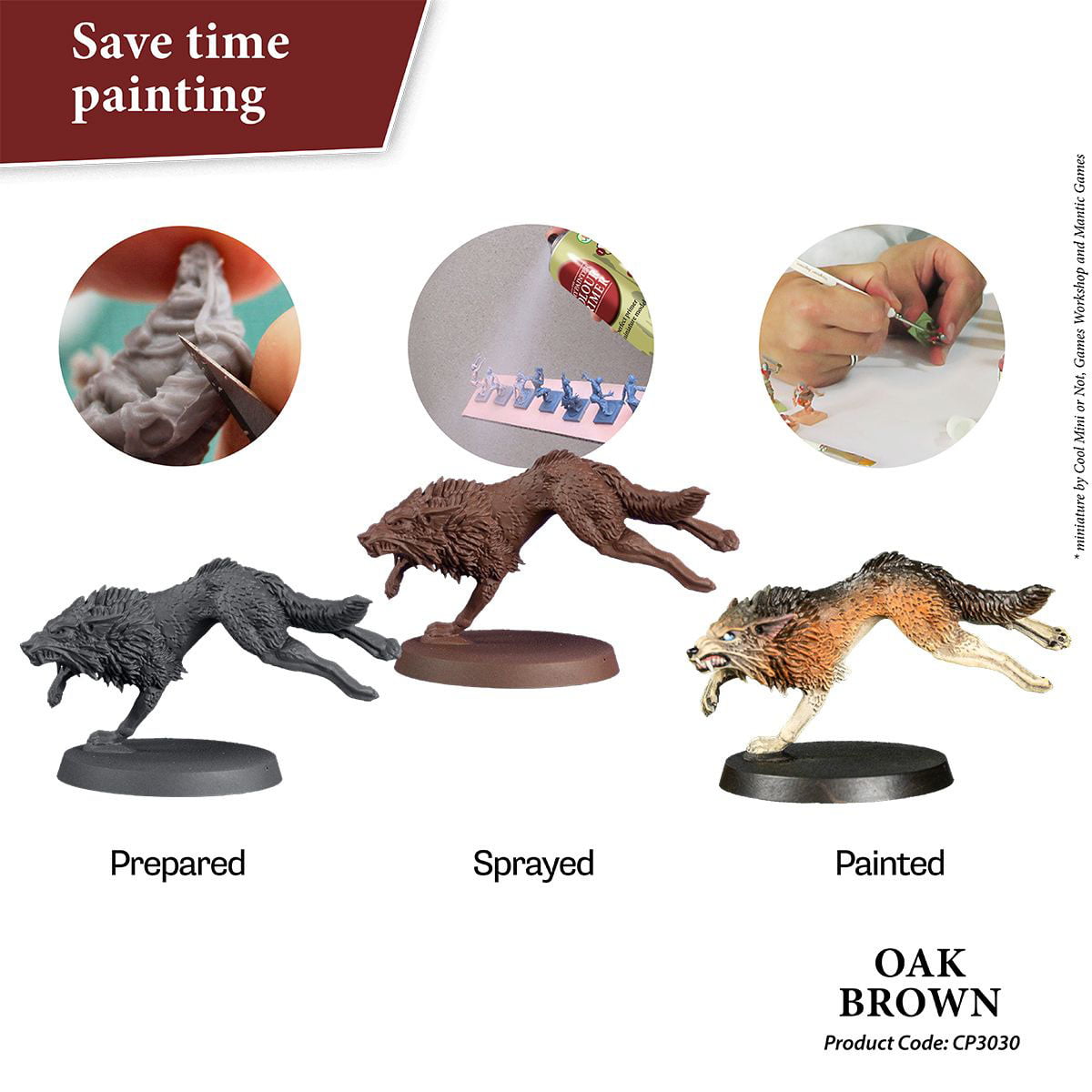 Oak Brown is a rich, dark brown that is designed to work specifically for earthen forces of fur and wood. Dryads, tree spirits, and beastmen alike will benefit from this basecoat. Oak Brown is also a popular choice for plastic and resin terrain pieces.