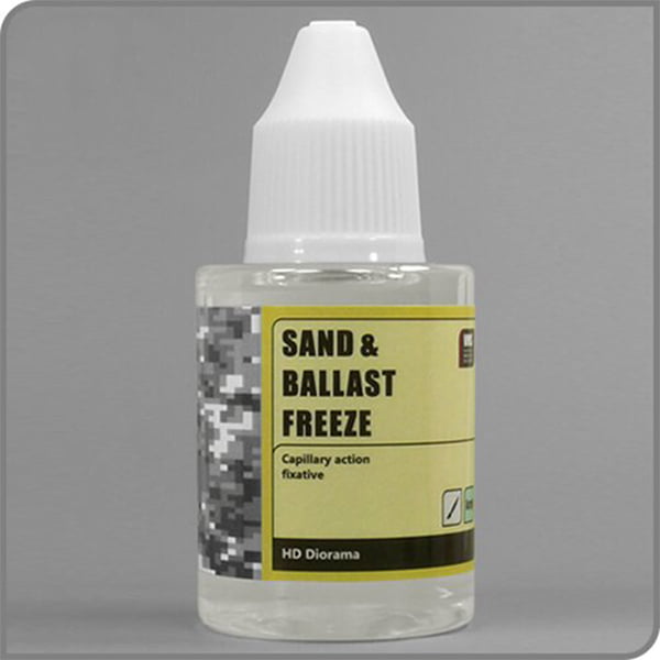Sand & Ballast Freeze is capillary action acrylic adhesive with very low surface tension formulated to bond loose material such as sand, gravel, rubble or ballast. Allows for bonding together very tiny, even micronised grains, without disrupting the structures they are forming, tested with both fine 40 µm sands (0,04 mm) and coarse gravel up to several millimetres in diameter. Saturated terrain, can be further shaped after application. Making foot prints, dunes, tire or track prints in wet structures is easier than before! IMPORTANT: The product is susceptible to low temperatures and mustn’t be frozen! Store and handle in room temperature.